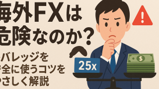 Uncategorized 海外FXは危険なのか?レバレッジを安全に使うコツをやさしく解説 FXとレバレッジってなに?FX(外国為替証拠金取引)とは、円やドルなどの通貨を売買して、為替レートの変化によって利益を狙う投資方法です。たとえば「1ドル=100円のときにドルを買って、1ドル=110円のときに売れば、10円分の利益が出る」と... 2025.06.29 Uncategorized